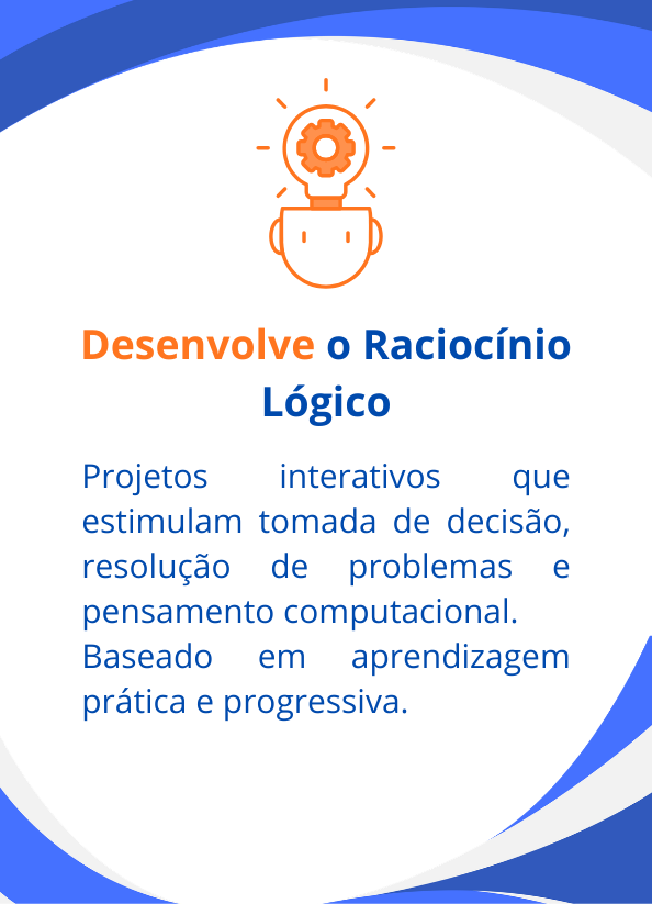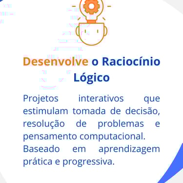 Desafios organizados por faixa etária que desenvolvem lógica, criatividade e pensamento computacional de forma prática e orientada.